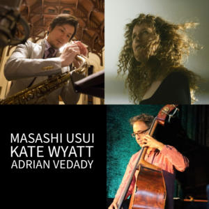 Montreal-based musicians Adrian Vedady (bass) and Kate Wyatt (piano) unite with Masashi Usui (saxophones) from Japan for a concert tour in Japan and Canada. The M.A.K. trio (Masashi, Adrian, Kate) promises a musical journey with a selection of exquisite standards and original compositions, showcasing the group’s devotion to sonic elegance, textural richness, and emotional intensity, rather than technical bravado, showiness, or excessive intellectualization.